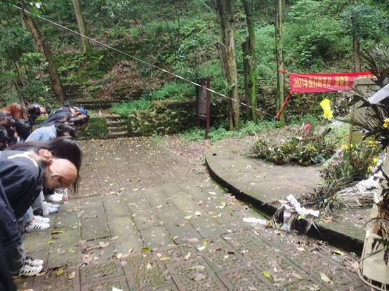 全体师生首先在庄严肃穆的烈士墓前肃立默哀三分钟;在学生党员龚卫卫向大家介绍彭楚藩烈士的生平事迹后,全体师生集体向烈士三鞠躬,党员黄文平同志带领同学们依次向烈士纪念碑敬献鲜花,表达对革命先辈的无限崇敬和深切缅怀之情。全体师生还在彭楚藩烈士墓前开展了重温入党誓词活动,继承先烈遗志,牢记初心使命。同学们随后对烈士陵园进行打扫整理。