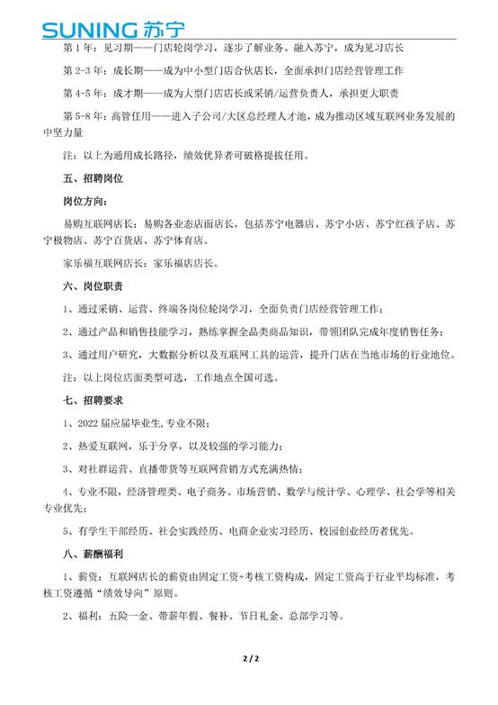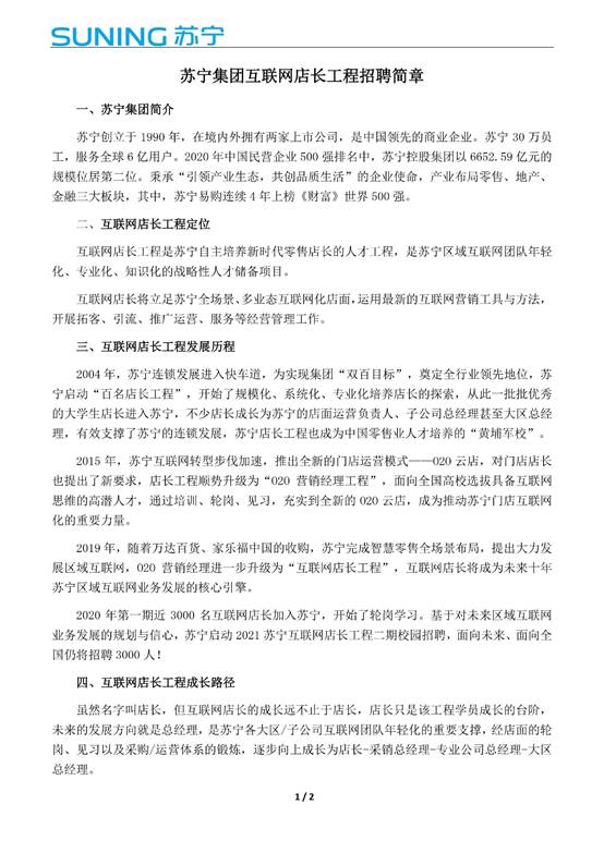 苏宁集团互联网店长招聘简章