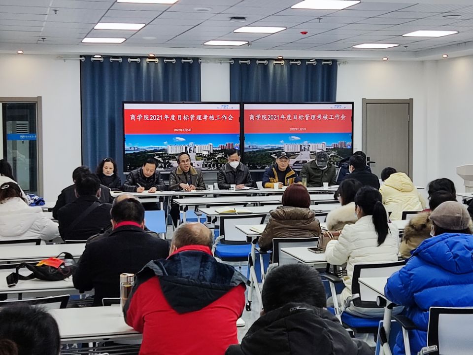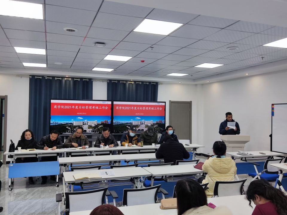 202215日下午,校党委副书记王家绪一行七人对商学院2021年度目标管理工作进行考核。