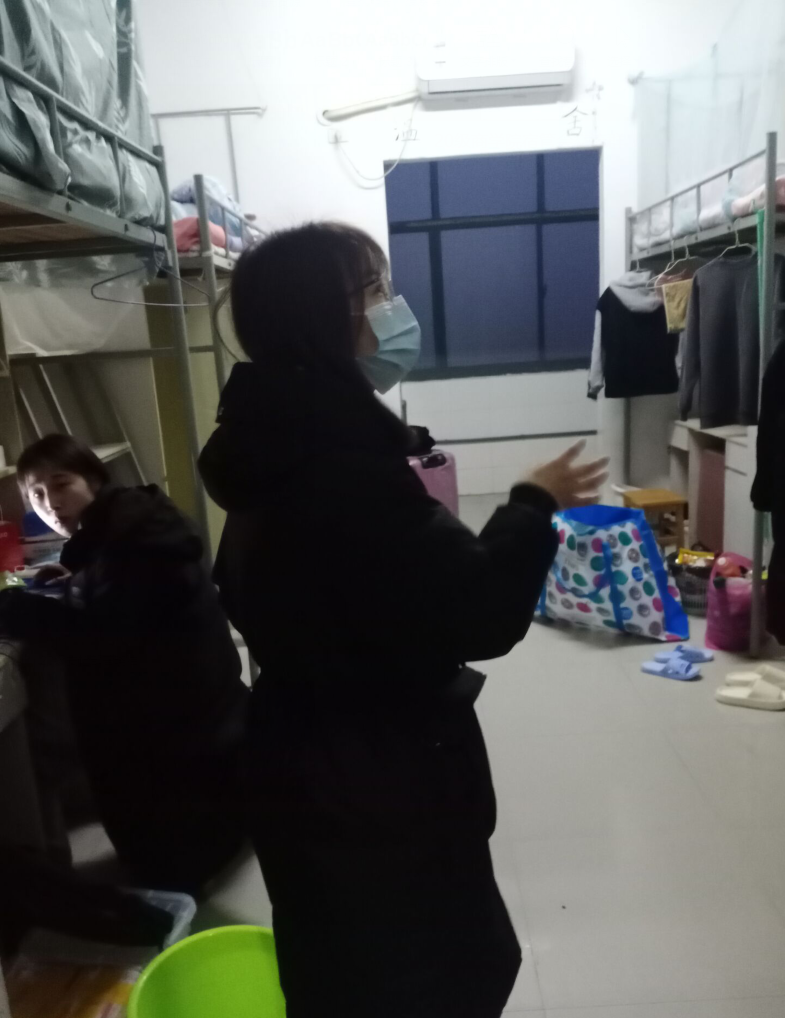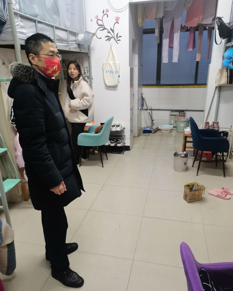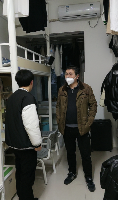 本网讯(记者 DX/文 汪谦 曹兵/摄)新学期伊始,2月19日—22日,学院学生陆续返校,为及时了解学生返校学习、生活情况,掌握学生思想和心理动态,22日下午,学院行政人员、专兼职辅导员,深入学生宿舍走访。