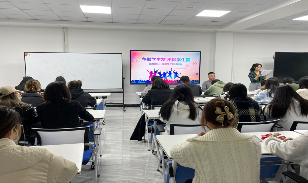 为提高学生干部的整体素质,加强学生队伍的凝聚力、战斗力,激发学生队伍的大局意识、服务意识、担当意识,2022年3月3日、4日下午16:30分,商学院智慧物流三楼教培中心召开了全院学生党员(干部)培训会,会议由院团总支书记洪全洲主讲,团总支副书记陈静主持。