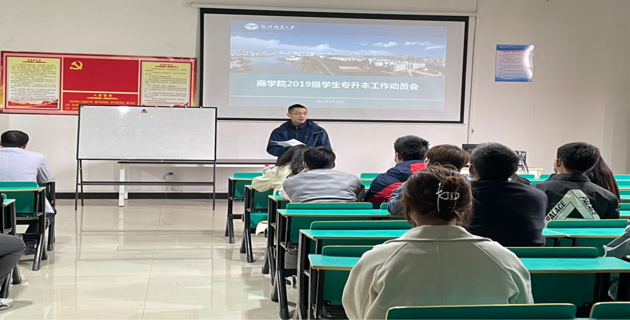 本网讯(文/李燕芳、陈静 摄/赵俊普 审/洪全洲)为扎实有效推进“专升本”工作,促进毕业生的学历提升,提高我院“专升本”考生的备考信心,鼓励同学们积极认真备考,商学院于2022年3月24日下午举行“2019级专升本动员大会”。会议由商学院院长方明亮主持。