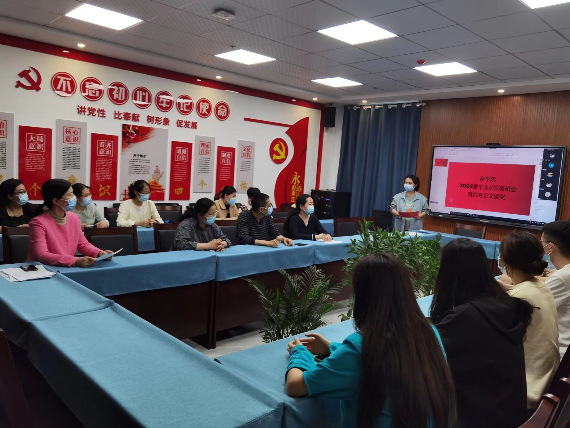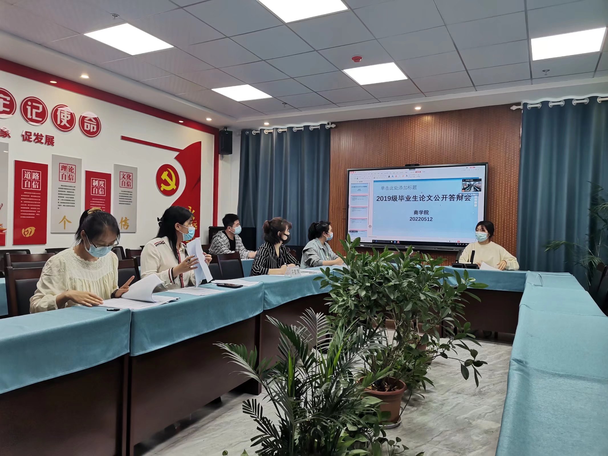 512 日下午,商学院在党员活动室举办2022毕业生公开答辩会。按照学统一安排,五个专业共推选16名学生参加公开答辩。因疫情原因,部分学生不能到答辩现场,答辩采取线上(腾讯会议)线下同步进行,全院未参加公开答辩的学生同时进入视频会议学习交流。学院院长方明亮、副院长朱亚平参加答辩会,答辩会由吴艳萍主持。