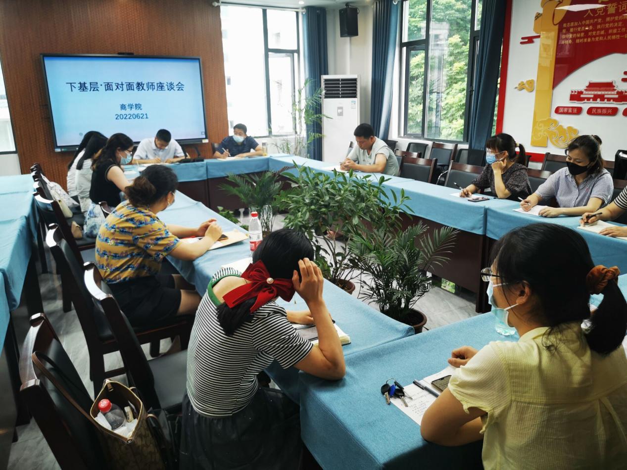 学校开展党员干部下基层察民情解民忧暖民心实践活动以来,商学院党政干部深入到学生寝室、走进师生中,着力在基层第一线发现问题,在基层第一线倾听师生的愿望和呼声与师生交心谈心,找准师生所思所忧所盼,确保情况在一线掌握、问题在一线发现、思路在一线研究、成效在一线检验、作风在一线转变,推动党员干部在基层一线现场解决问题。对师生在党建、教学管理、教师管理、学生管理、人才培养、科学研究、社会服务等方面的意见和建议,能现场解决的问题尽量现场解决针对师生反映的落实政策不到位、工作不规范职称评聘、科研考核等方面的问题,逐一记录,逐步向相关职能部门反馈。