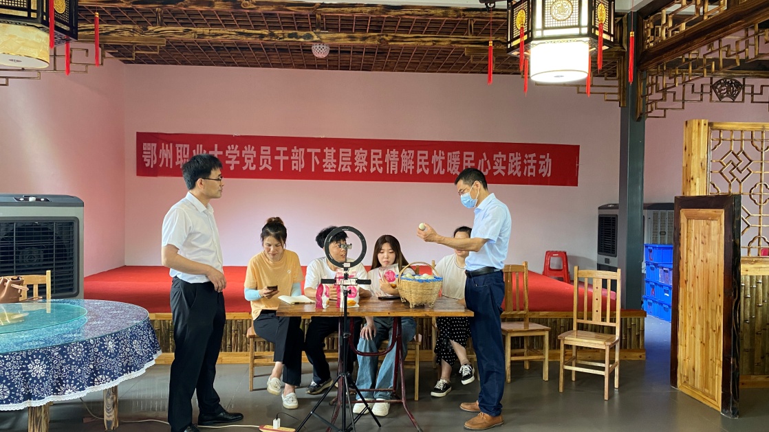 6月24日,鄂州职业大学商学院方明亮携电子商务教研室主任王涛等一行到鄂州市华容区段店镇上湖村,为鄂州旺发农业发展有限公司兴达生态农庄员工开展新一期助农电商技能培训,以专业所学助力乡村振兴,推进农村电子商务发展。