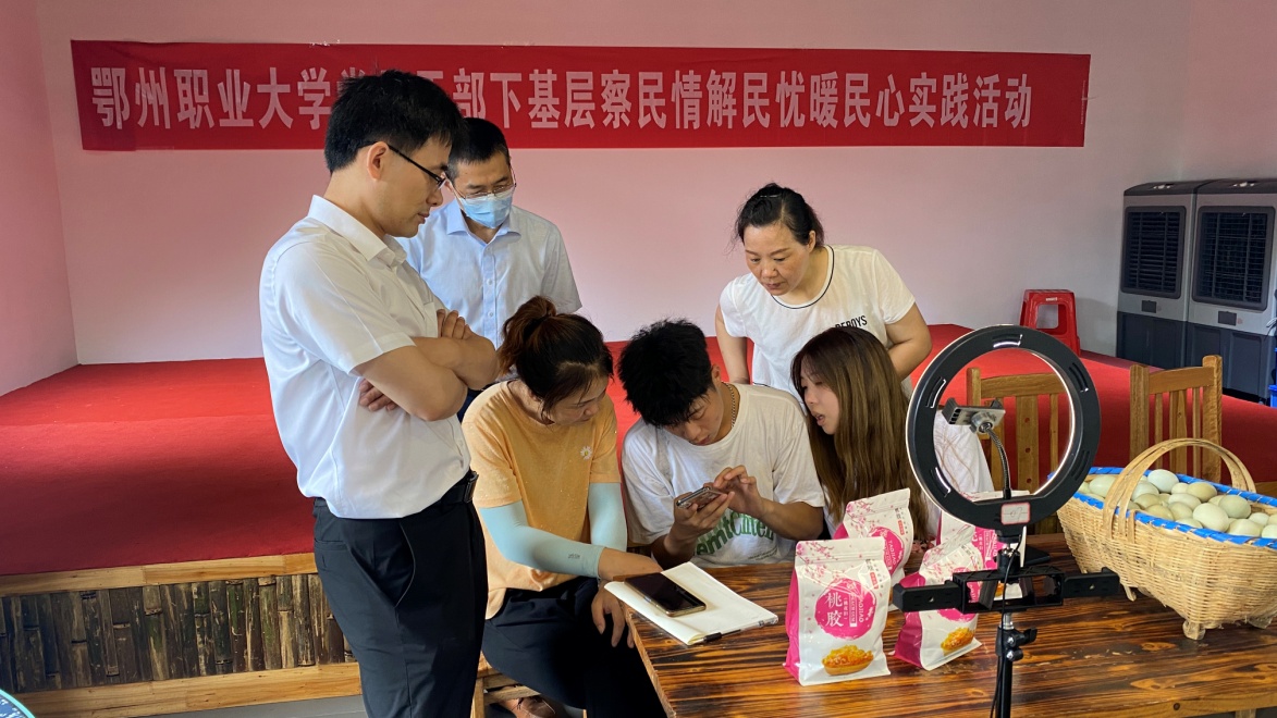 6月24日,鄂州职业大学商学院方明亮携电子商务教研室主任王涛等一行到鄂州市华容区段店镇上湖村,为鄂州旺发农业发展有限公司兴达生态农庄员工开展新一期助农电商技能培训,以专业所学助力乡村振兴,推进农村电子商务发展。