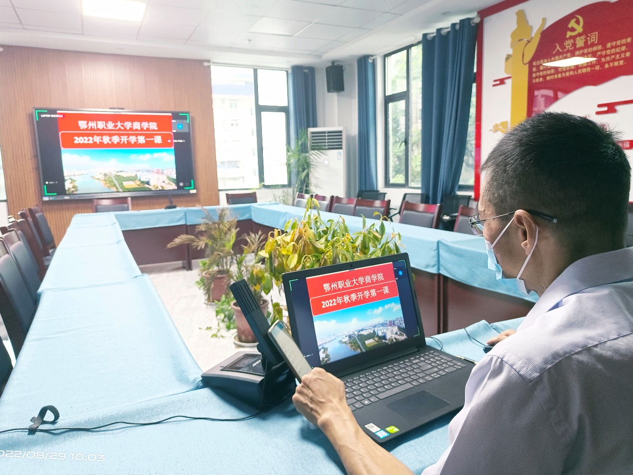 新学期伊始,为了营造良好开端,激发学生的学习热情,开学第一课是教育的重要环节,也是对学生进行思想教育的一个良好契机,更是学生们每年开学的 一门必修课。为了将《开学第一课》落到实处,8月25日下午,学院领导高度重视,组织全院教师开会,由李雪霞副院长传达鄂大教发【2022】14号文件要求,并组织安排学院“开学第一课”活动安排,要求全体教师认真做好线上“开学第一课”活动准备。