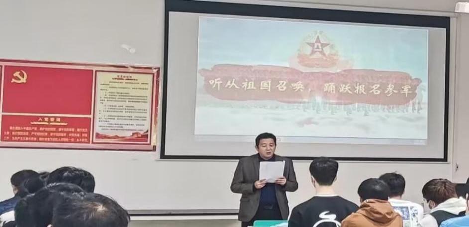 徐书记宣读了《鄂州职业大学党政办公室关于做好2023年大学生征兵工作的通知》,并作动员讲话,就兵员征集条件、应征报名方法和程序、注意事项等方面进行详细解说,徐书记还通过具体的案例分享,鼓励和引导我院2023届毕业生应征入伍,希望他们到部队大熔炉中将芳华岁月淬炼成铮铮铁骨