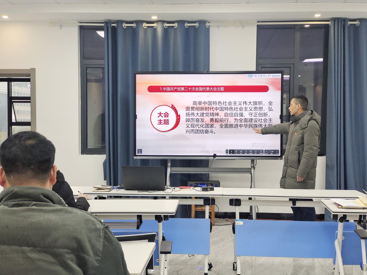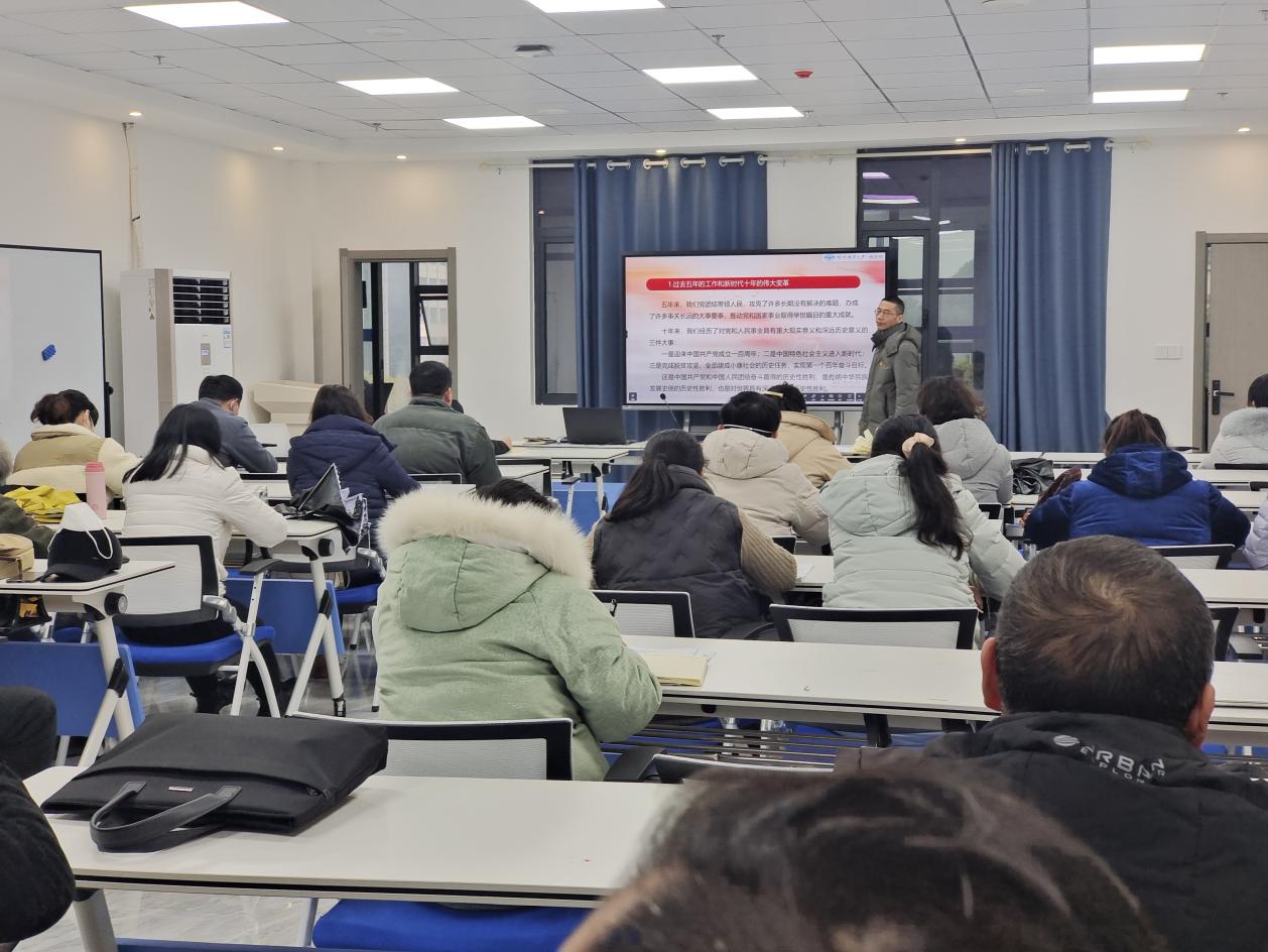 223日下午商学院院长方明亮同志以《踔厉奋发 勇毅前行》为题,为全院教师讲授党的二十大精神专题党课。方明亮院长主要从八大方面进行宣讲,包括党的二十大主题和主要成果、过去五年的工作和新时代十年的伟大变革、马克思主义中国化、时代化新境界、中国式现代化的深刻内涵