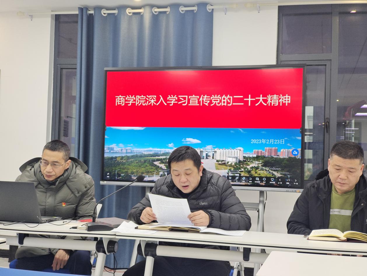 、全面建设社会主义现代化国家的目标任务、坚持党的全面领导和全面从严治党,积极应对风险挑战,以及如何深入推进党的二十大精神在商学院落地落实。