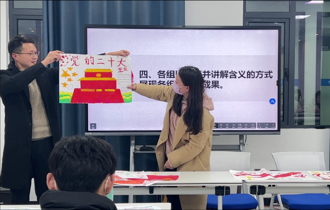 随后各组分别为大家讲解了自己绘画作品当中的含义,畅谈自身理解,分享了各组对于二十大精神的深刻体会。让大家见识到了各小组成员们丰富多彩的精神体现。