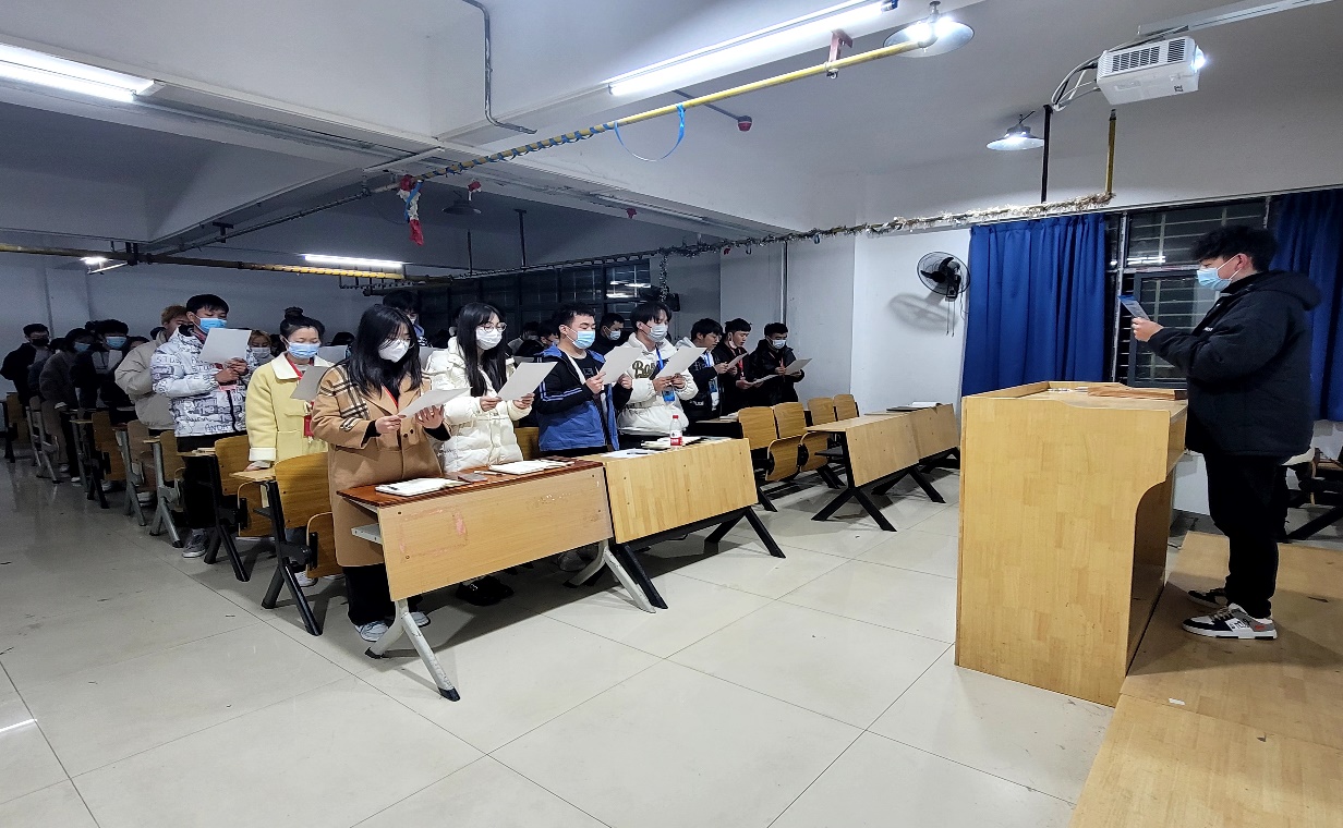 随后,姚老师还带领全体学员一起学习了关于加强作风建设的八条规定,指出学生干部要带头学习规定,严格恪守、自觉维护规定。会议的最后,全体学生干部诵读并签订了《商学院学生干部自律承诺书》。