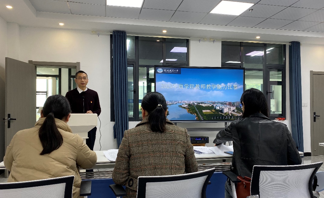 3 月 30 日(周四)下午 2:30,经教研室初赛评选出的 4 个教学团队共12位教师参加了商学院2023 年教师教学能力比赛复赛。