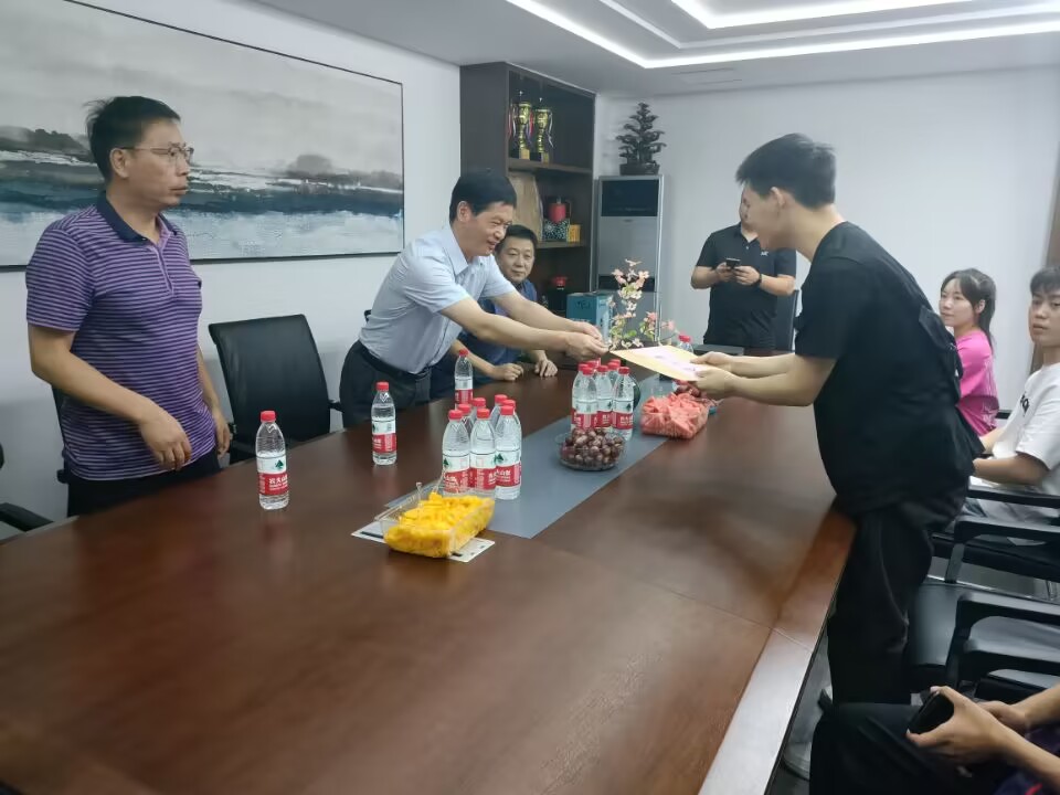 2023年7月1日上午,副校长马凌军、学工处处长陈永红、商学院党总支负责人徐宏伟、辅导员熊学春等赴武汉庄泰有限公司,看望商学院捐髓救人学生肖越(化名),并送去慰问金和荣誉证书。