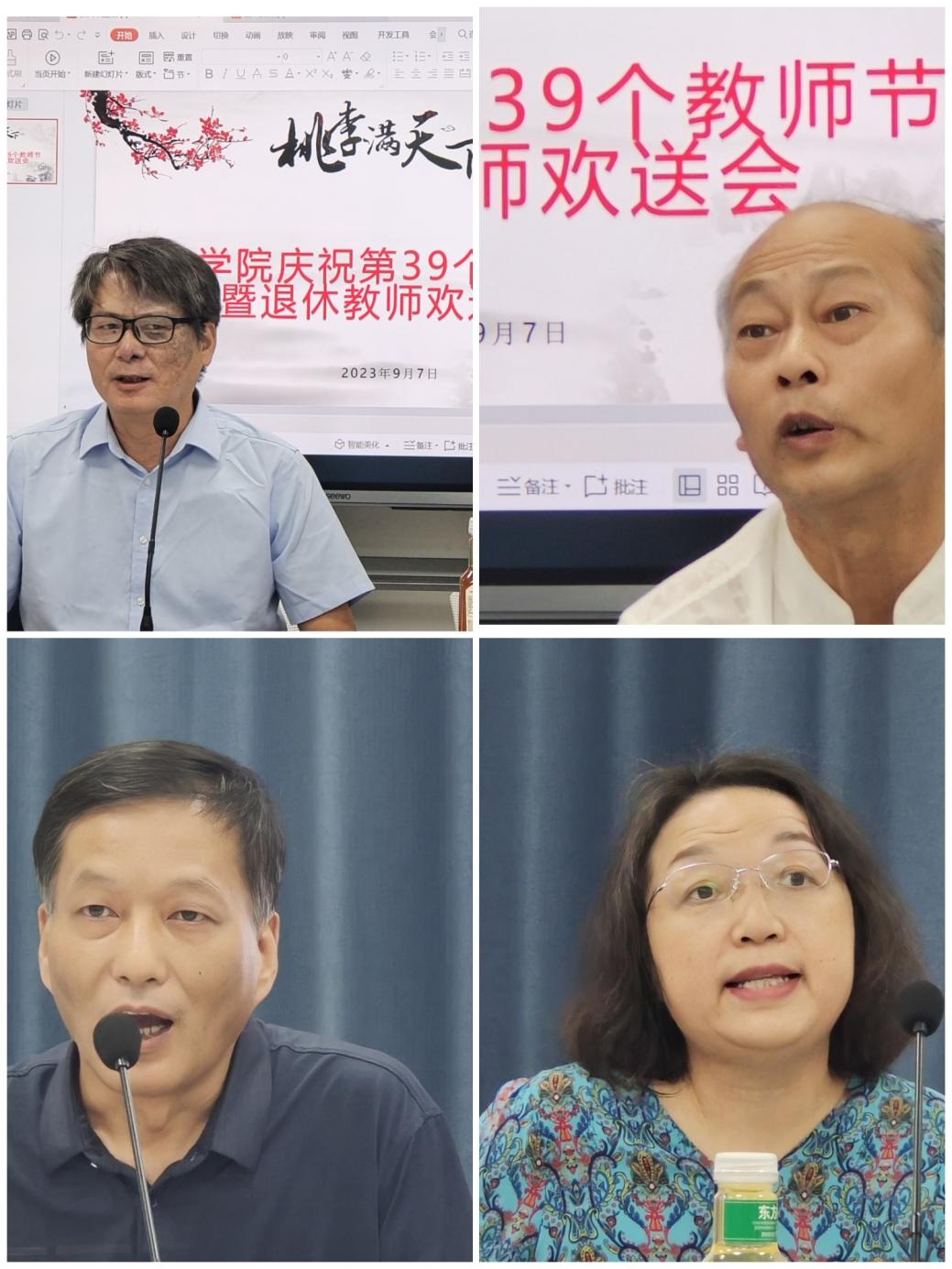 择一事终一生,不为繁华易匠心,不舍初心得始终。四位退休老师分别回顾了自己在教育战线上的激情岁月,言语间饱含着对同事的不舍与感激,对学生的关怀与厚爱,对学校和学院发展的期望,对教育事业的无限眷恋。廖艳群老师作为教师代表,对四位老教师表达了最崇高的敬意与最诚挚的祝福。