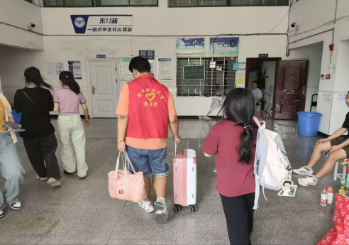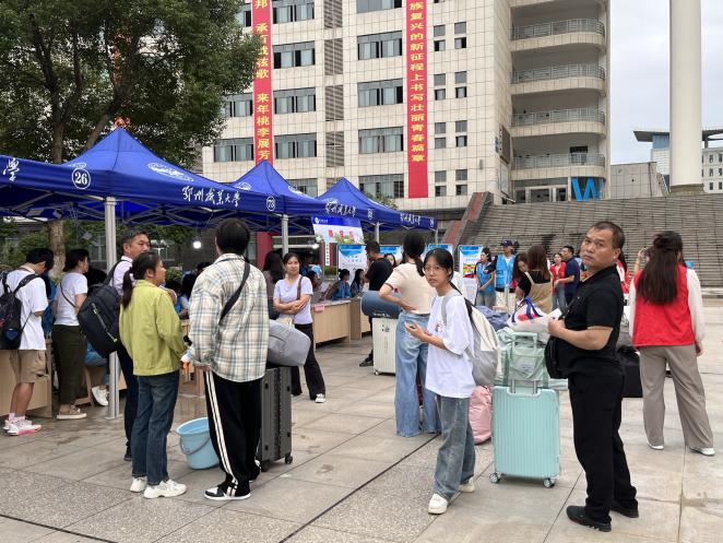 迎新现场,身着蓝色和红色马甲的志愿者们面带微笑,热忱欢迎学弟学妹们的到来,他们穿梭于咨询台、教学楼、宿舍楼、食堂等地,耐心地为新同学们提供引导、答疑、行李寄存与搬运、办理入学手续等服务。他们忙碌的身影让每一位报到的新生倍感温暖和亲切,极大地缓解了新生初入校园的紧张和焦虑感。