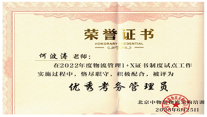 2023年6月25日,由教育部指定的第三方培训评价组织——北京中物联物流采购培训中心公布2022年度物流管理职业技能等级证书先进单位及个人评选结果。我校荣获“物流管理职业技能等级证书优秀试点院校”称号,吴红丽、卫志刚、何波涛三位教师分别被评为“优秀辅导教师”、“优秀考评员”和“优秀考务管理员”。