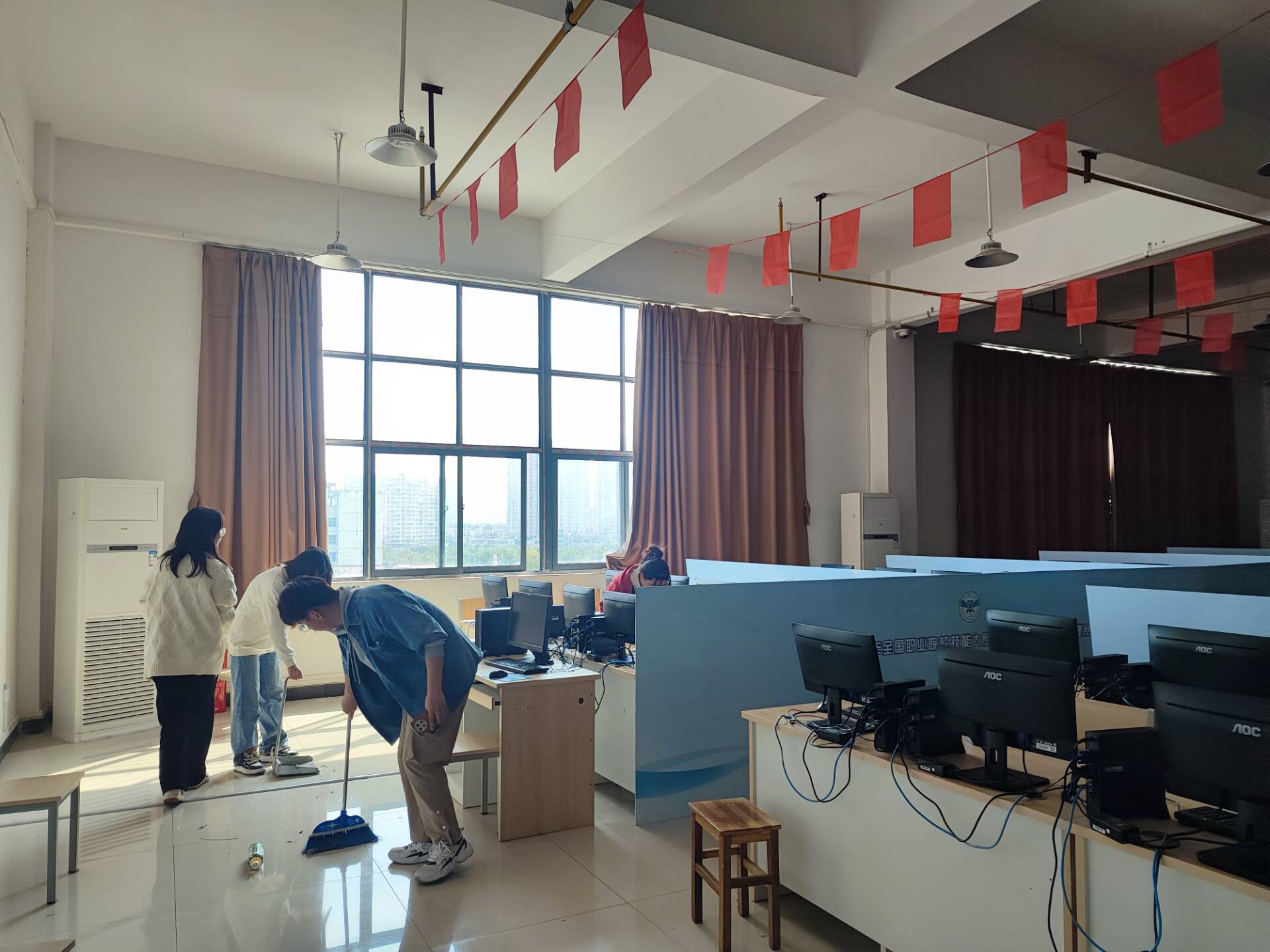 商学院团总支学生会、宿管会、青年志愿者协会全体成员们热情洋溢地投入到清扫工作中,他们在各个机房和教室之间穿梭,展现出了团结协作、充满活力的精神风貌。