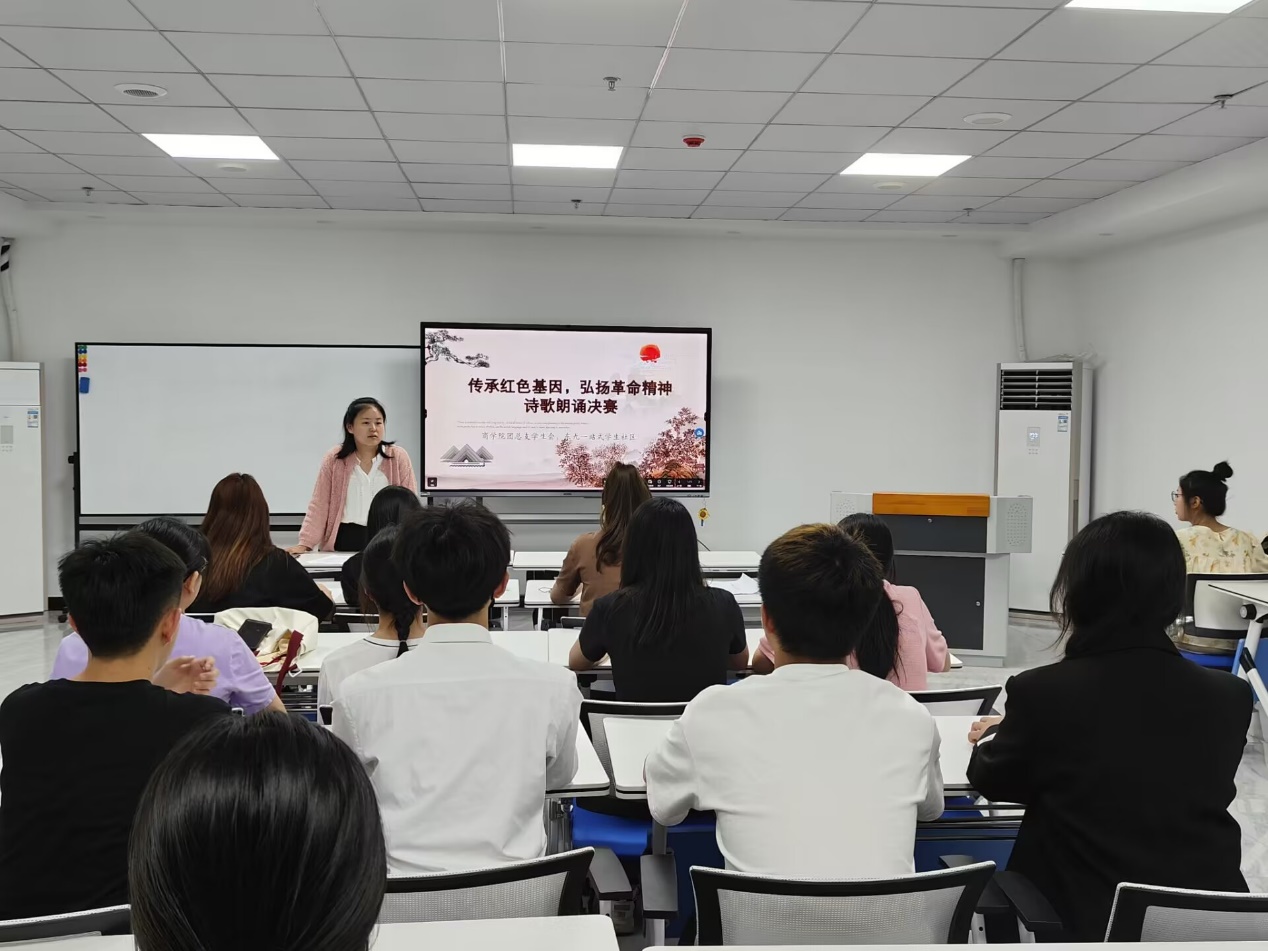 【通讯员:宋铭芳】为了进一步弘扬和传承党的优良传统,激励广大学生积极投身社会主义建设,6月13日下午商学院联合东九一站式学生社区联合举办了一场以“传承红色基因,弘扬革命精神”为主题的诗歌朗诵比赛。经过激烈角逐,共有10组选手成功晋级决赛。决赛现场,选手们用激情朗诵展现对红色基因和革命精神的理解。