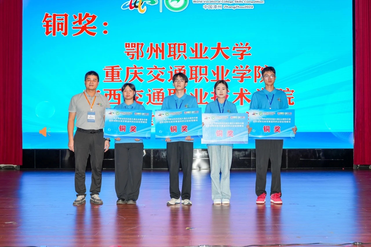 1028-31日,2024年世界职业院校技能大赛总决赛争夺赛财经商贸赛道四高职组供应链管理赛项在福建漳州职业技术学院举行,来自全国各省、自治区、直辖市的60支参赛队的395名师生齐聚一堂。经过三天激烈角逐,我院由宋铭芳、宋佳顺、卢萍、刘振四位同学组成的代表队克服时间紧、任务重的困难,全力以赴,最终在比赛中斩获铜奖。