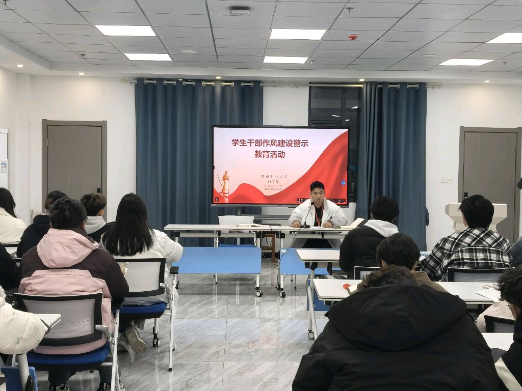 随后开展了干部作风建设警示教育,教育活动介绍了活动背景和目的,分析了学生干部作风现状,并从加强思想教育、完善制度建设、提升培训质量以及强化自我约束等四个方面提出学生干部作风建设具体措施,为提高学生干部素质、增强学生干部责任心、促进学生干部队伍建设指明了方向。