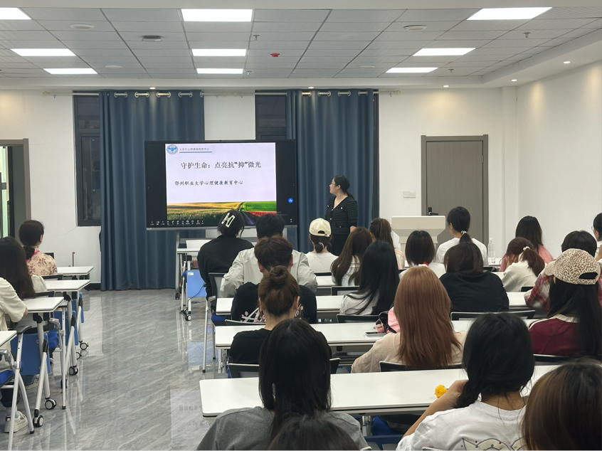 为加强学生心理健康教育,提升心理调适能力,营造积极向上的校园氛围,4月9日下午,鄂州职业大学商学院东九栋一站式学生社区开展了一场主题为“守护生命:点亮抗"抑"微光”的心理健康知识培训。本次活动特邀校心理咨询中心朱晓静老师担任主讲,在校班级班长、心理委员、安全员及寝室长等学生代表参与学习。