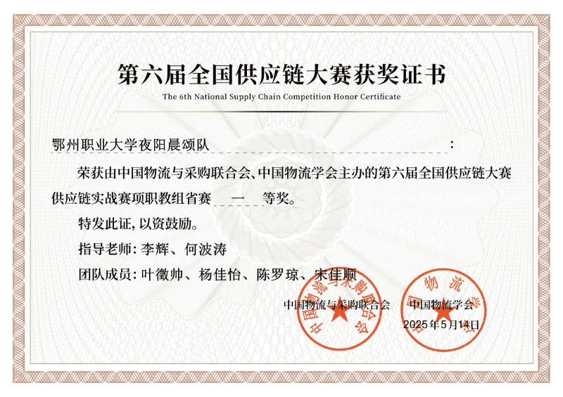 (通讯员:何波涛)2025524日,由中国物流采购联合会与中国物流学会联合主办的第六届全国供应链大赛商贸及实战赛项省赛及全国初赛圆满落幕。在省赛中,我院3支队伍荣获三个一等奖并入围全国初赛;在全国初赛中,三支队伍经过两轮激烈对抗,全部跻身全国36强,晋级全国总决赛。