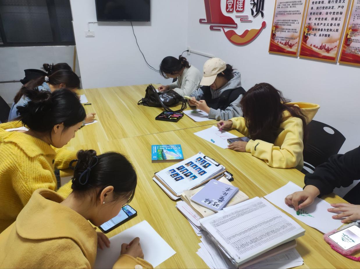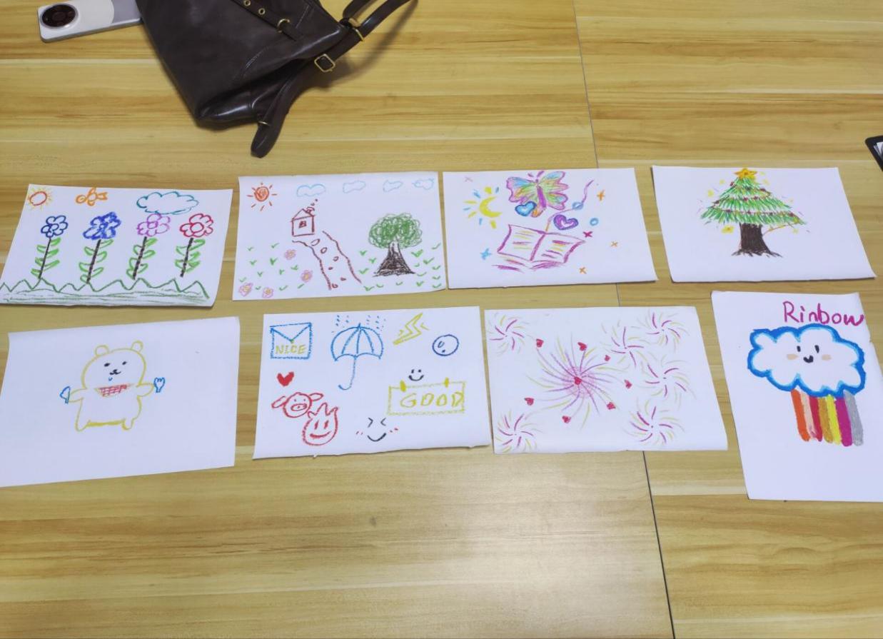 活动现场设置了多个互动体验区,包括情绪分享、笔尖传情等多个环节。情绪分享会环节,参与者自由分享近期的情绪波动与内心感受。每一位分享者坦诚述说,倾听者则给予全然的关注与共情理解。这个过程有效地帮助同学们识别和表达情绪,减轻了心理负担,并在彼此的共鸣中深刻体会到我不是一个人”的支持感,增强了人际信任与情感联结。“笔尖传情”环节,同学们暂时抛开课业压力,用画笔和色彩描绘内心的图景与未来的梦想。无需专业的绘画技巧,只需跟随内心的指引,让情感在画纸上自由流淌。一幅幅作品或是宁静的港湾,或是绚烂的星空,或是充满希望的未来蓝图,都是同学们内心世界的真实映照。此活动为大家提供了一个非语言的表达渠道,在艺术创作中舒缓了压力,梳理了情感,重新注入了积极的心理能量。