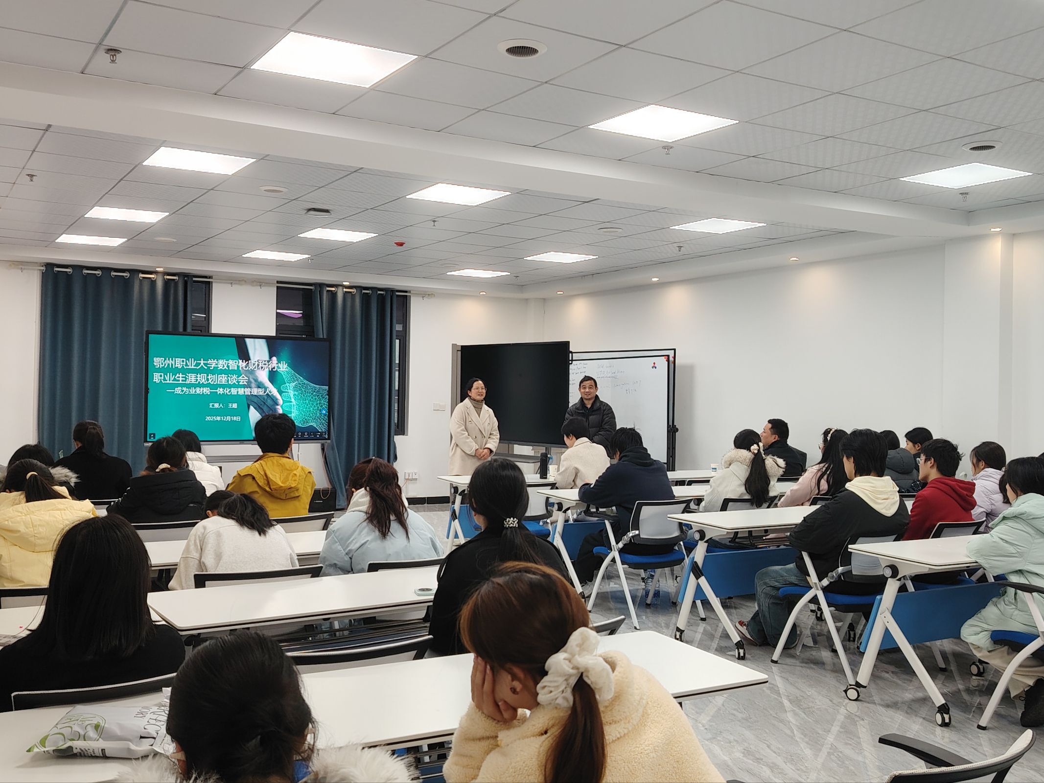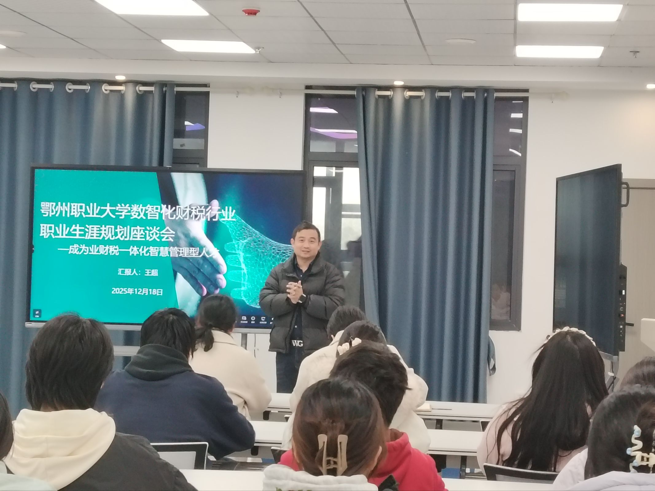 2025年12月18日下午,鄂州职业大学商学院特邀南京云账房财税咨询顾问,为大二大数据与会计专业学生举办数智化财税行业职业生涯规划座谈会。