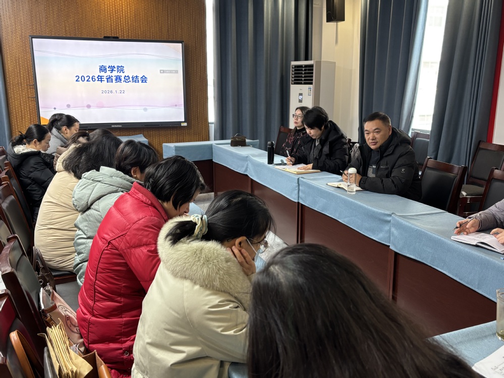 1 月 22 日,商学院组织召开 2026 年湖北省职业院校技能大赛复盘总结会,全面梳理本次大赛参赛经验,深入分析赛场表现,凝聚 “以赛促学、以赛促教、以赛促建” 的育人共识。学院负责人、各赛项指导教师、学院竞赛导师及随行裁判参加会议。