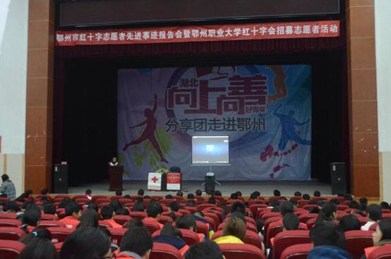 1110日下午,鄂州市红十字志愿者先进事迹报告会暨鄂州职业大学红十字会招募志愿者活动在校礼堂举行,为白血病患儿捐献造血干细胞的鄂州青年陈迪志也现场分享了自己的爱心故事。