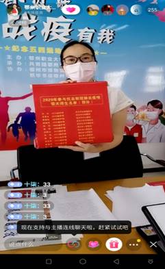 讲到一封抬头称呼是“鄂州职业大学”的信,陈艳书记动情地说“是的,同学们,无论天南地北,你在外面,就是学校的形象!感谢我们的每一位同学,你们勇敢逆行,为抗击疫情做贡献,是为学校树形象!你们遵守规则,不在外面乱跑,也是为学校树形象!学校以你们为荣!谢谢你们!亲爱的宝宝们!”