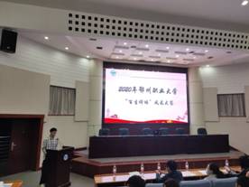 我校于2020年10月26日在图书馆学术报告厅,举办了“百生讲坛”风采大赛。此次演讲比赛共有16名晋级选手,他们是经历了班团支部初赛、学院复赛层层筛选后,选送的优秀选手。大赛还邀请了校团委以及部分学校领导担任此次评委。