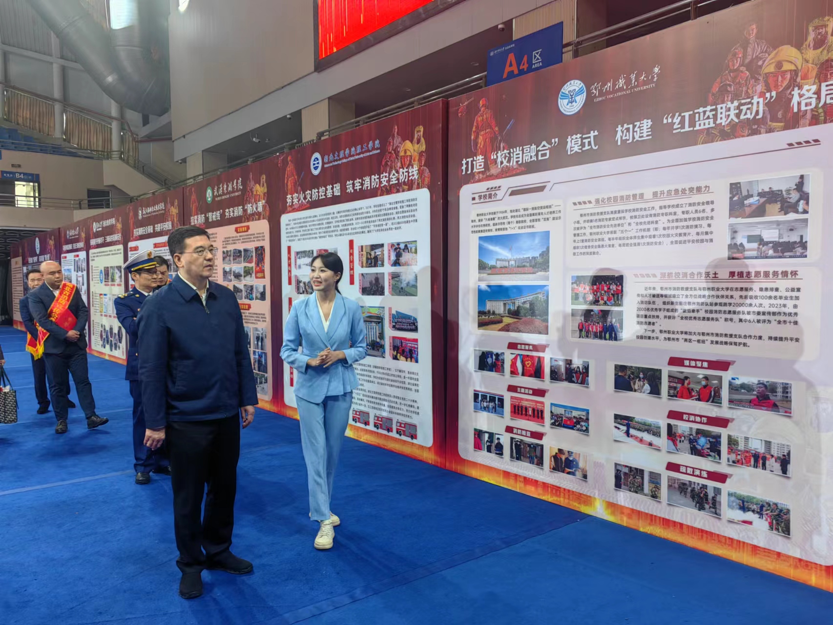 副省长盛阅春在消防宣传月启动仪式现场观看了消防文艺展演,并观摩了高校消防宣传成果展示区。