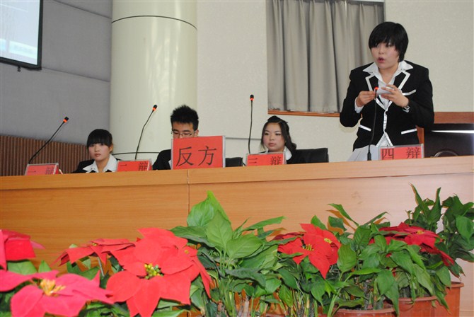 二0一二年四月二十五日下午四点半,鄂州职业大学第十四届“澜湖杯”辩论赛总决赛在图书馆准时举行,出席本次比赛的有校领导及各院系主任等。外语系和传媒系代表队分别经过三轮艰难的比赛,最终以小组第一的身份进入到总决赛。此次辩论赛围绕“喜迎十八大,争创新业绩”争优好还是创新好这一主题展开,双方辩手分别是来自外语系的狼朝队和来自传媒系的勇远兜队。来自外语系的辩手汪沆、李玉婷、向强和杨亚沨在比赛中不畏强敌,妙语连珠,其精彩的表现,赢得现场观众们的阵阵掌声。经过一个多小时的激烈辩论,外语系辩手们最终不负众望,勇夺冠军,这是外语系继08年后时隔四年再次问鼎冠军,辩论结束后,外语系领导和辩手等在图书馆合影留念。