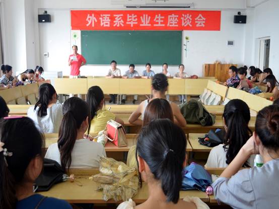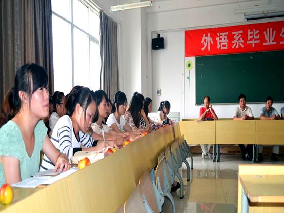 又是一年毕业季。6月13日下午,我校2012届外语系毕业生座谈会在新教学E-803 举行。系领导董才雨、刘真彪、潘宏友及全体科任老师、毕业生参加座谈。