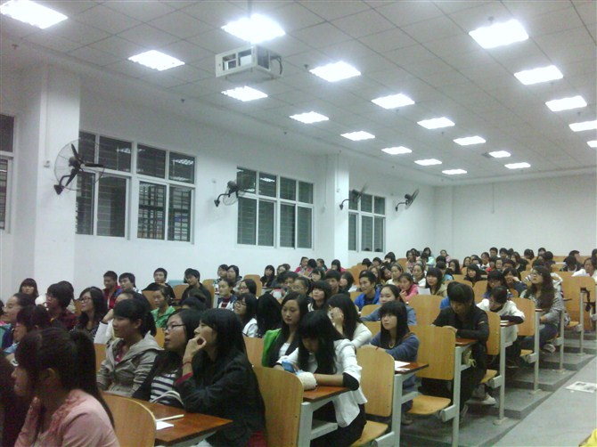 3月22日下午,我校新教学楼E101 和E102教室里坐满了来自各院系大一和大二的学生。他们均是经班级选拔后来参加本学期外语系开设的“英语口语实训”课程的选拔活动。为全面提高学生的口头表达能力和交际能力,外语系开设了面向全校学生的“英语口语实训”公共选修课。此课程由外籍教师Sonja和本系教师余荷花共同执教,本课程采用灵活的教学模式,组织丰富的教学活动,从学生的发音、语法、词汇、演讲礼仪、演讲技巧等方面培养学生的跨文化交流意识,全面提高英语语言运用的能力。本次选拔活动将从近300名学生中选出30名优秀学生,进入口语班学习操练,实现小班教学的高参与、高互动、高关注和高发展。