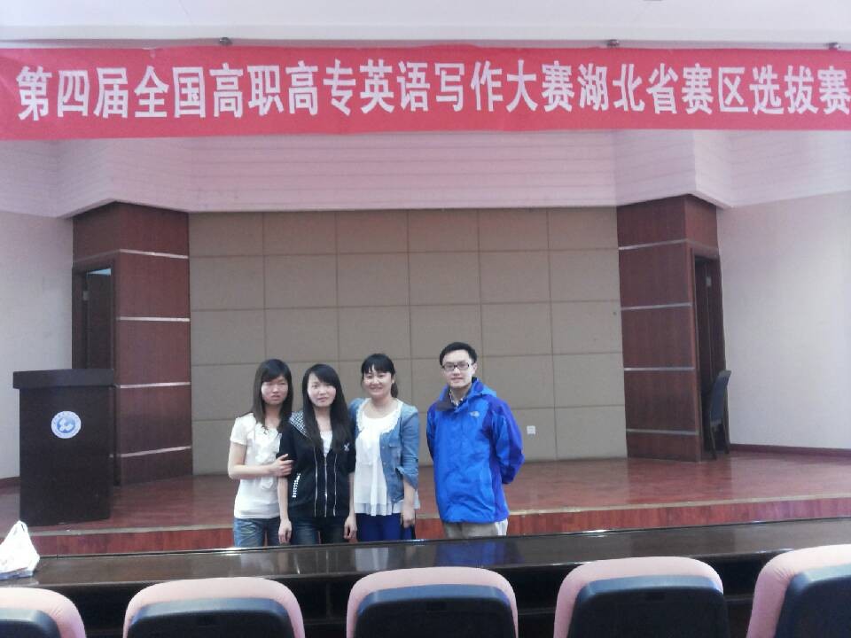 4月27号上午,来自我校的三名学生前往武汉职业技术学院,参加第四届全国高职高专英语写作大赛湖北省赛区选拔赛。次日,英语写作大赛(湖北分赛区)复赛成绩揭晓,我校朱厢炜同学(11级建筑设计)和王香梅同学(12级护理专业)荣获公共英语组三等奖,熊群同学(英语教育专业)荣获英语专业组三等奖。