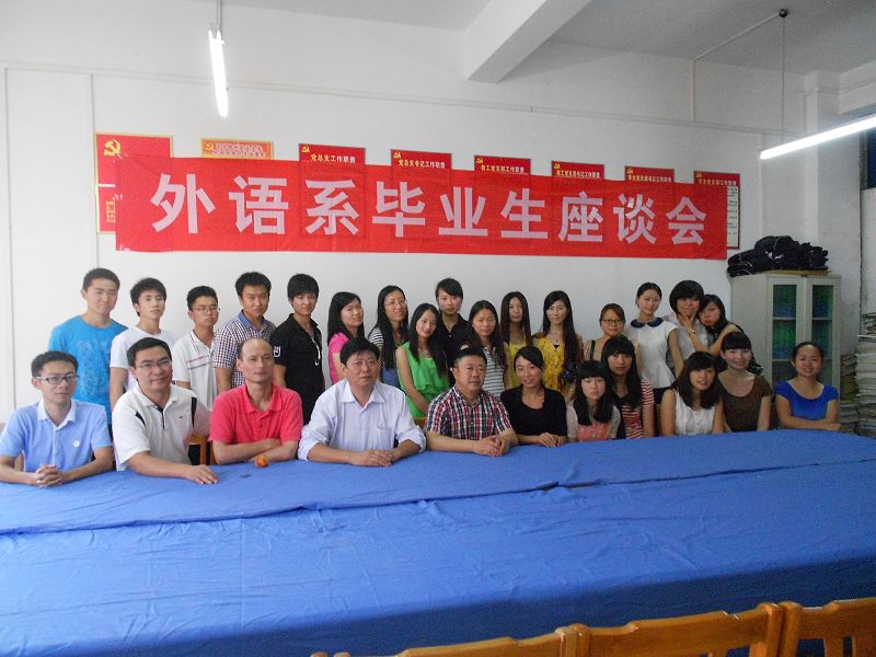 6月8日下午,我校2013级外语系毕业生座谈会在行知楼S404 举行。外语系领导董才雨、刘真彪、吴丰盛、潘宏友,外语系团总支书记兼2010级辅导员姜维及全体科任老师、毕业生等参加座谈。