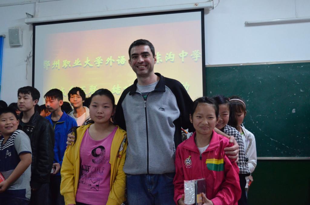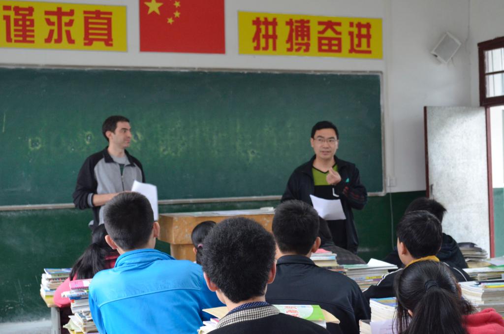 讨论会结束后,外语教师吴丰盛、陈霜梅、杨培沛和外籍教师Boris分别为东沟中学八年级、九年级同学上了一堂英语课,受到了学生们的热烈欢迎。