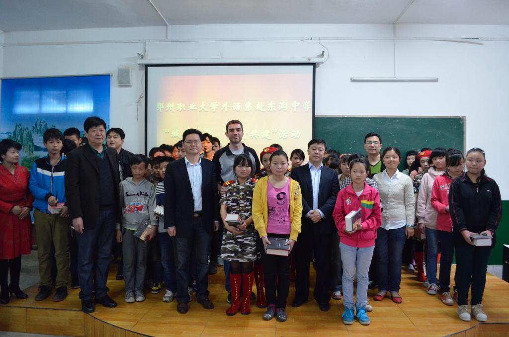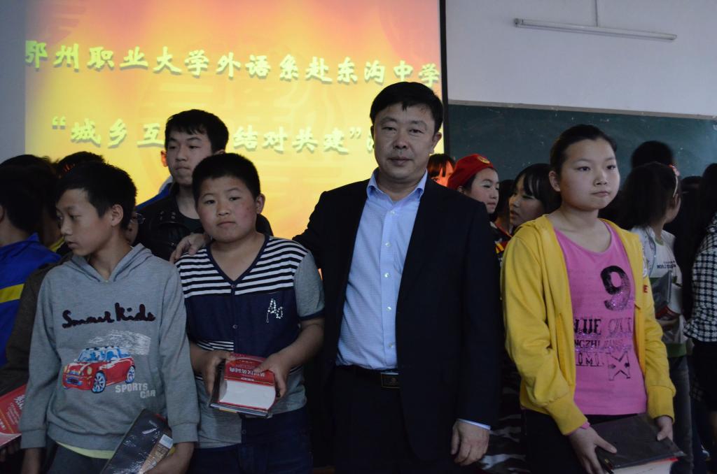 为了深入开展党的群众路线教育实践活动,加强外语人才培养模式与专业建设的调研,关爱农村留守儿童的健康成长,2014年4月25日,鄂州职业大学外语系师生奔赴东沟中学,开展了“城乡互联、结对共建”系列活动。