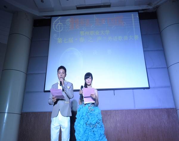 5月16日晚,第七届“春之声”外语歌曲大赛总决赛在图书馆二楼学术报告厅内举行。鄂州职业大学外语系党总支书记董才雨、外语系副主任潘宏友、外语系副主任吴丰盛、外语系团总支书记姜维莅临现场。评委:校办童艳、外语系毕春意、余荷花、杨培沛、袁晶、Boris。