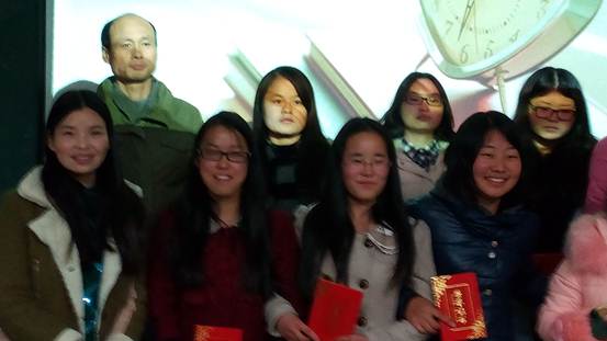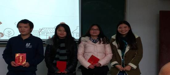 三等奖颁奖:贺康、李杉杉、杨建玉、余荷花老师(从左至右)