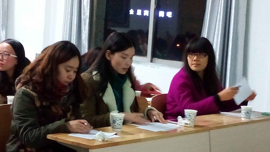 2014年12月11日晚,二号教学楼,外语系英语朗诵比赛成功举办,外语系教师潘宏友、余荷花、刘宁担任现场评委,余荷花老师为选手做了精彩点评。