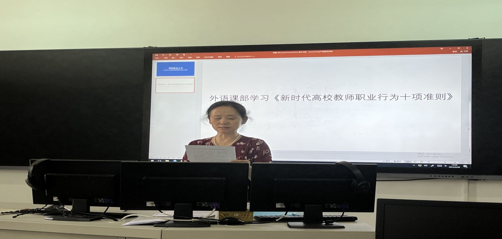 二0二三年四月二十日下午,外语课部全体教师开展学习《新时代高校职业行为十项准则》和《教育部关于高校教师师德失范行为处理的指导意见》文件精神;在本次学习活动中课部全体教师现场签订了《教师师德承诺书》;目前全体教师已提交有关师德的学习书目。分管教学的潘宏友副主任对此项活动提出了学习要求,办公室主任李桂华组织了此次学习活动。根据外语课部师德师风工作安排,外语课部将在后续阶段开展相应的学习教育活动,让师德师风建设贯穿我们的日常各项工作。