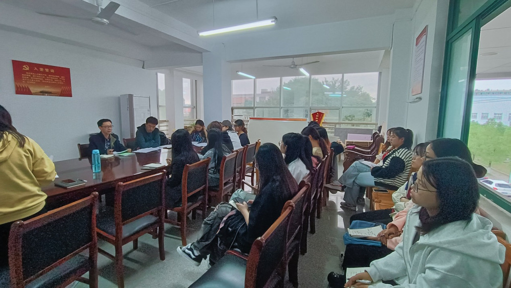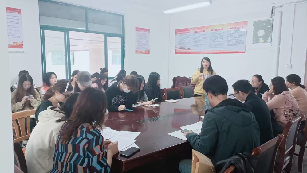 2023年10月8号,外语课部在三号楼三楼会议室开展国家资助政策专题学习活动,各班级辅导员及学生代表参加了此次会议。