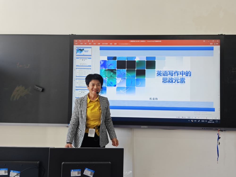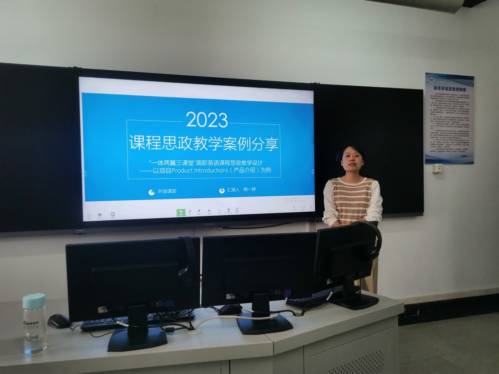 课部主任潘宏友主持会议。他提出,课程思政的目标就是要站在为党育人、为国育才的高度,要以爱党、爱国、爱社会主义、爱人民、爱集体为主线,围绕爱国爱党的理想信念,对学生进行社会主义核心价值观教育,涵养学生的家国情怀、提升学生的文化素养和道德情操。高职英语和专业英语教师要用心、用情、用爱去教书育人,感召学生,要结合不同学科专业特点,进行课程的凝练和设计。课程思政建设应在方法、内容、模式上下功夫,挖掘各门课程中蕴含的思政要素和德育功能;着力探讨课程思政教学改革思路及亮点,从而实现思政教育与专业教育的协同推进,实现系统设计、自然融入,注意知识传授、能力培养与价值引领的有机统一,构建全员、全过程、全方位育人的大思政工作格局。