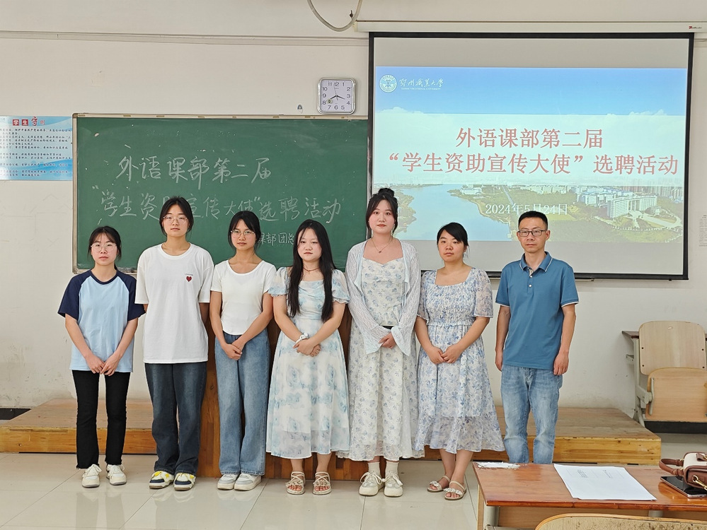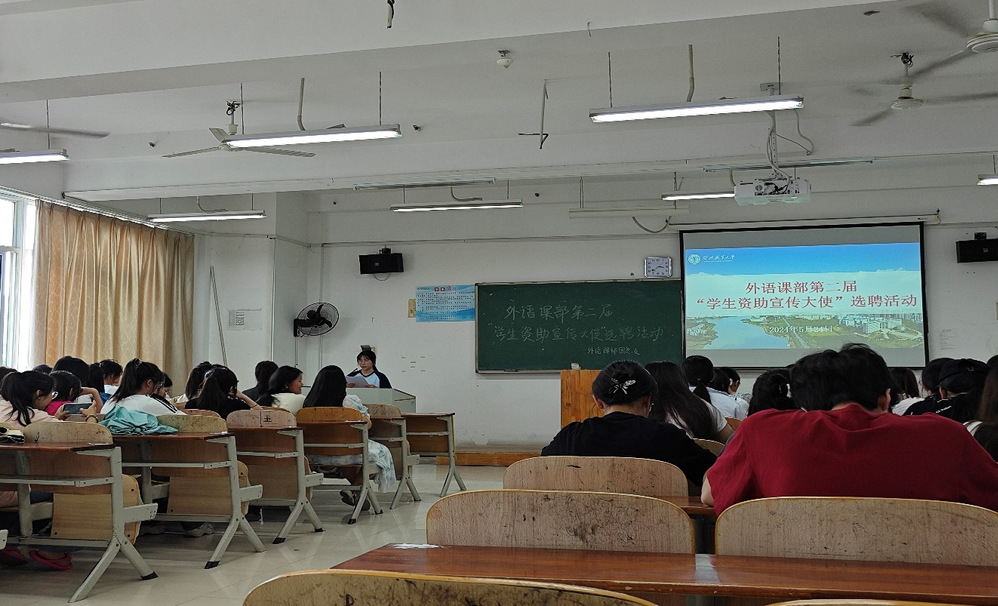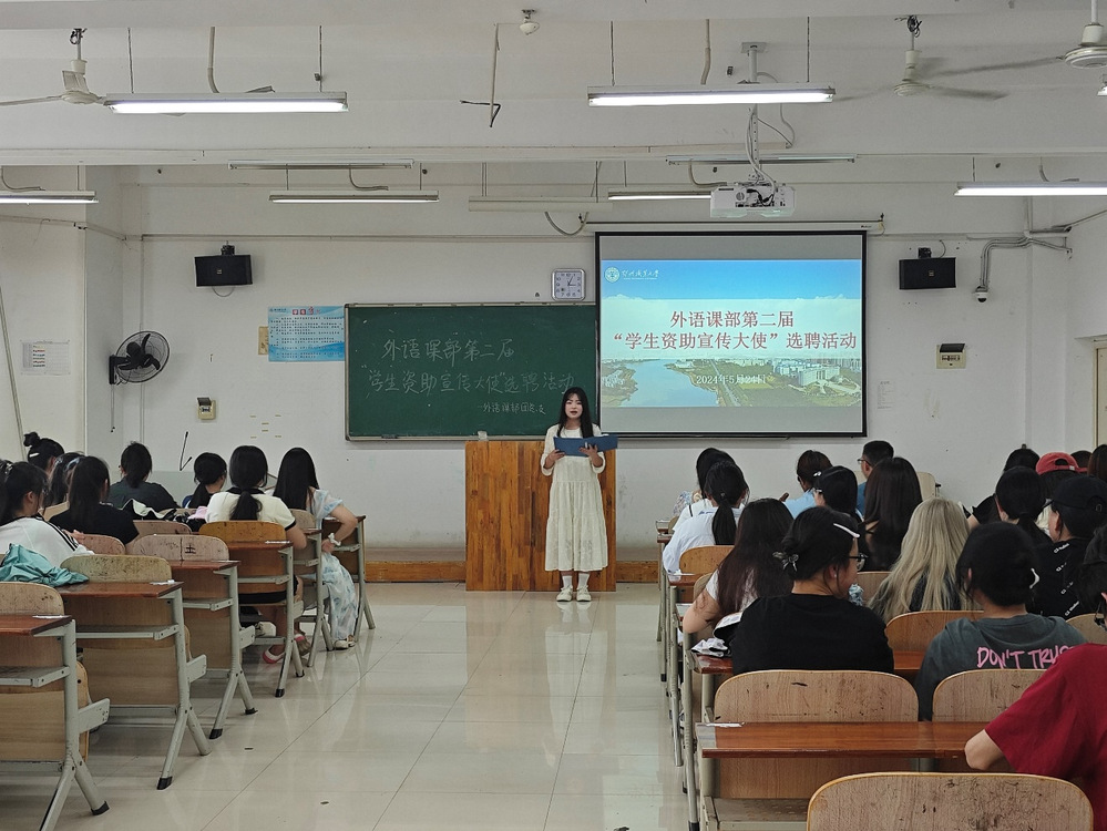 为深入贯彻“三全育人”及“资助育人”理念,培养学生的感恩、思源、奉献精神,凸显资助育人实效,2024年5月24日下午,外语课部在五号楼E306教室开展第二届“学生资助宣传大使”聘选活动。本次聘选特邀外语课部副书记姜维老师、外语课部团总支书记朱怡清老师和外语课部学生会主席刘国银任评委。