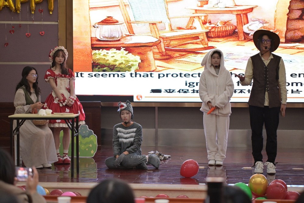 当日,学术报告厅内座无虚席,共有十个精心编排的节目逐一亮相。这些节目涵盖了经典文学作品改编、原创校园故事、梦幻童话故事等多种题材,充分展现了同学们丰富的想象力和扎实的英语语言基础。从台词的雕琢到角色的塑造,每一个细节都凝聚着他们的心血与努力,力求将最精彩的表演呈现给观众和评委。
