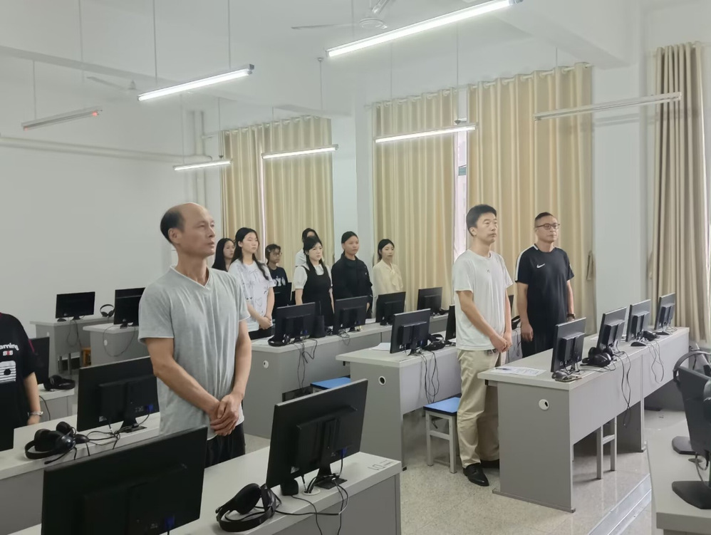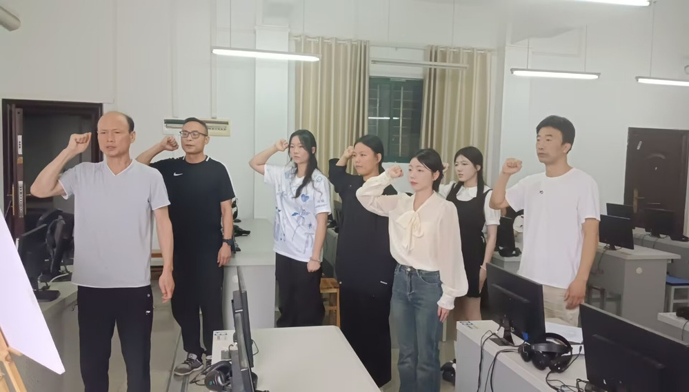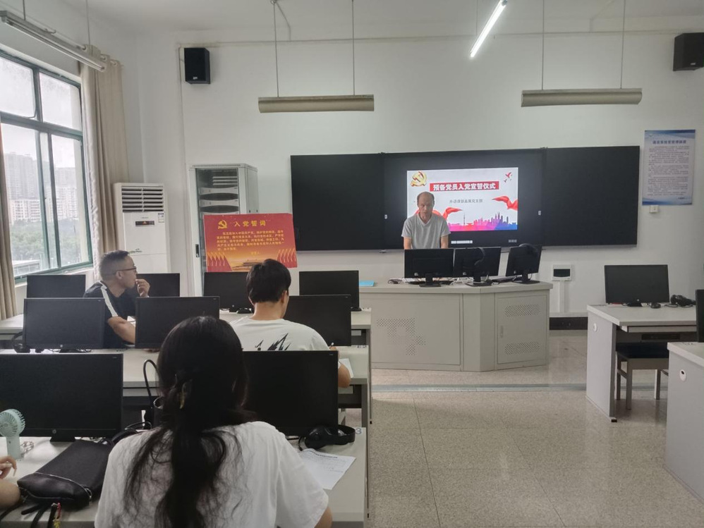 2025年6月9日16点,外语课部在三号楼S504举行2025年春预备党员入党宣誓仪式。活动由曹鲁习老师主持,外语课部书记潘宏友、副书记余存华及部分入党积极分子代表参加本次活动。